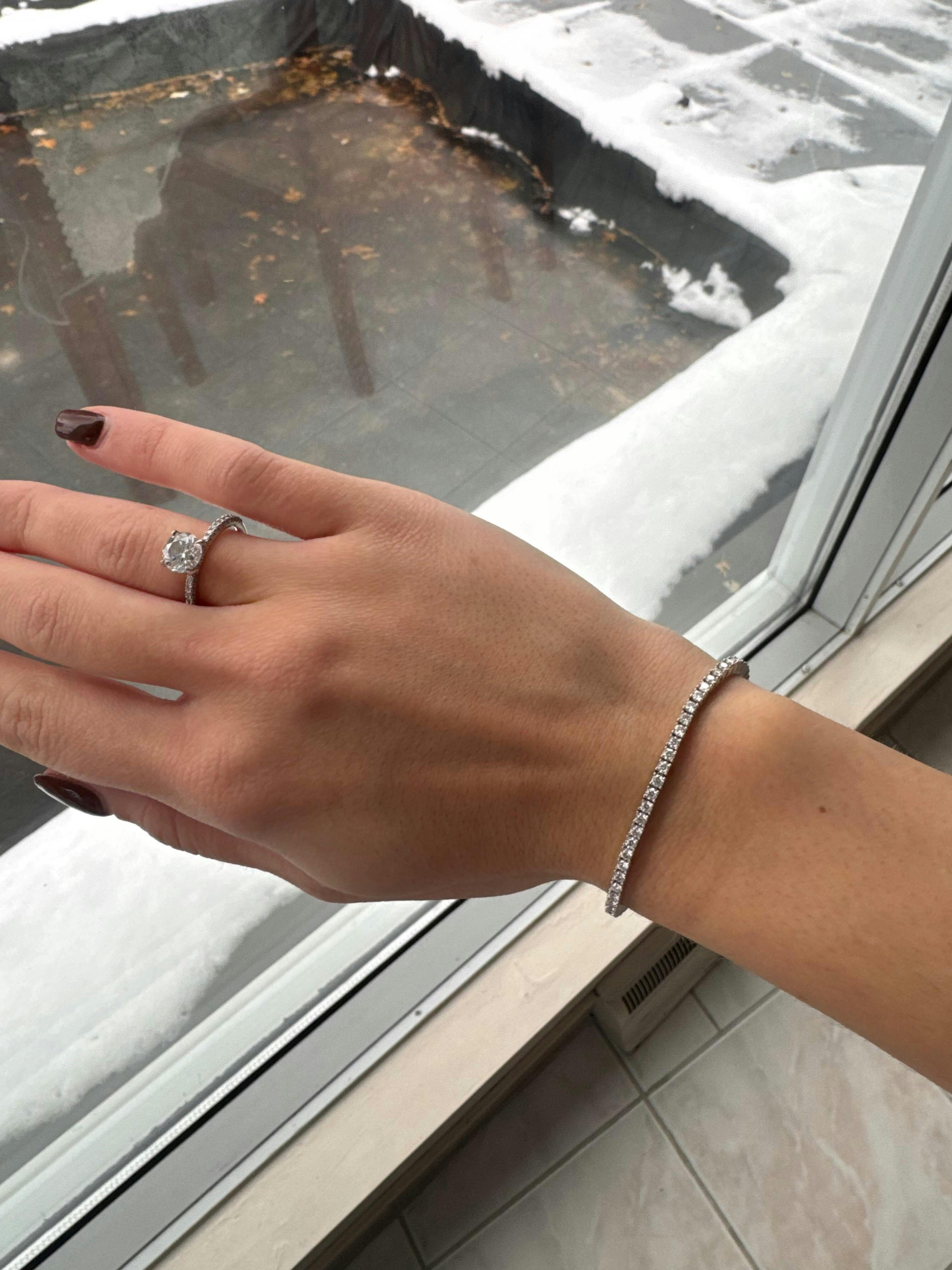 Got this as a gift for my gf and she’s obsessed. The shine is crazy and it even came with a moissanite certification, which was a nice touch. Great quality.